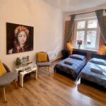 Do Państwa dyspozycji, będzie jeden z 2 przytulnie i stylowo urządzonych pokoi o powierzchni około 25 metrów kwadratowych. Dostępna będzie również część wspólna z aneksem kuchennym, łazienka z toaletą oraz osobna toaleta. Pokoje wyposażone są w komfortowe, wygodne łózka, garderoby oraz telewizory. Dostępna jest również bezprzewodowa sieć wifi.