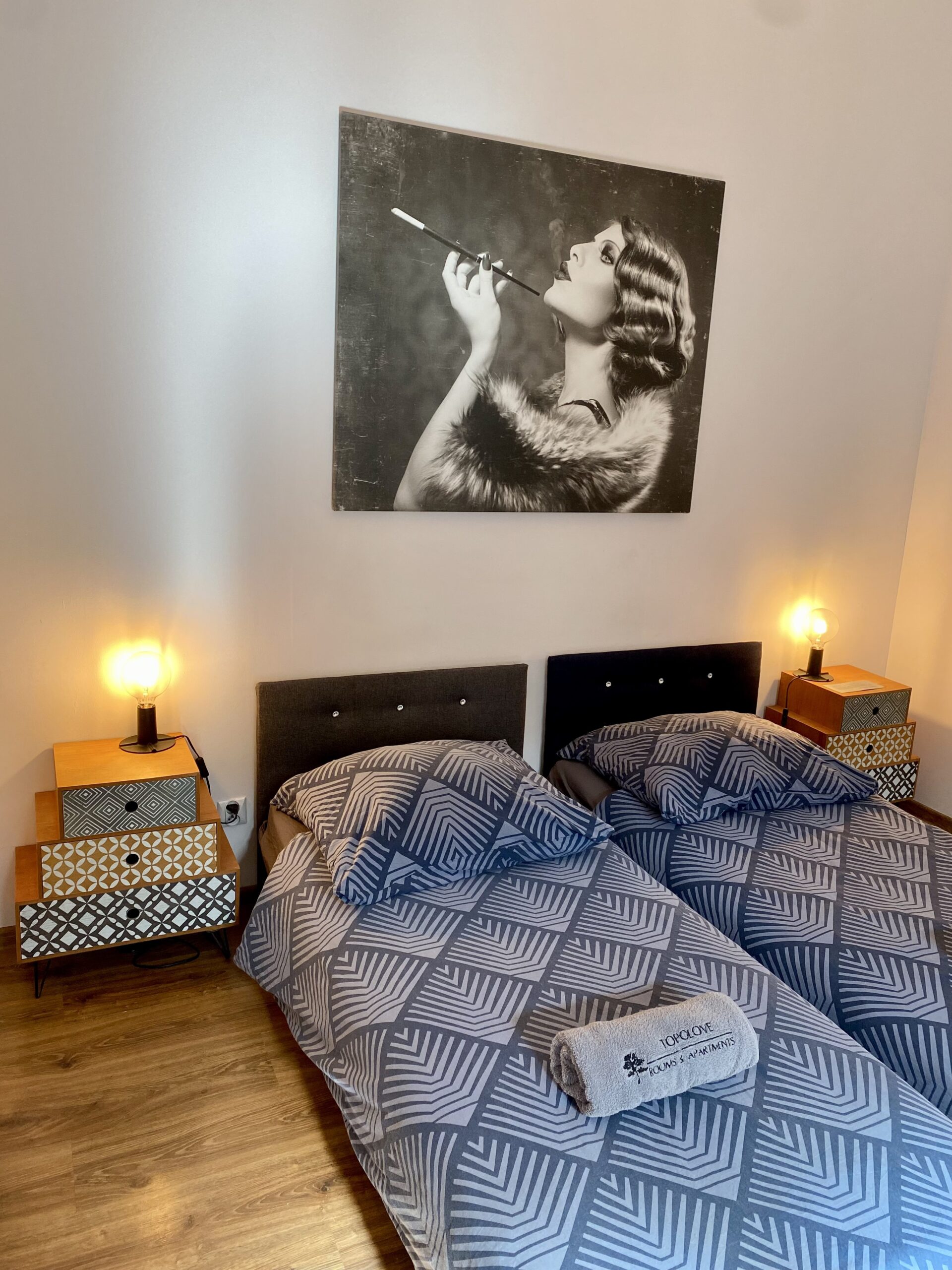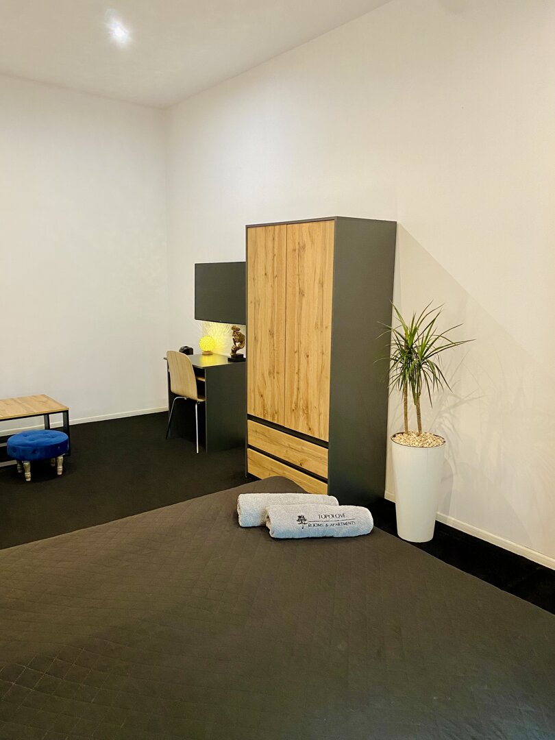 W Topolove Rooms & Apartments oddajemy do Państwa dyspozycji wiele zróżnicowanych pokoi oraz apartamentów, tak aby każdy znalazł miejsce dopasowane do swoich potrzeb. Wszystkie pokoje urządzone są w minimalistyczny, stylowy sposób. Wyposażone są w wygodne łózka, garderoby oraz fotele. Wszystko to pozwoli Państwu na przyjemny wypoczynek i relaks w przerwie miedzy zwiedzaniem Krakowa. Dodatkowo, w każdym z pokoi dostępne są telewizor oraz bezprzewodowy internet.