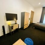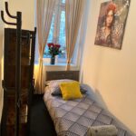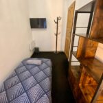 Do Państwa dyspozycji będzie mały, przytulny stylowo urządzony pokój o powierzchni około 7 metrów kwadratowych. Dostępna będzie również część wspólna z aneksem kuchennym oraz łazienka z toaletą. Pokój wyposażony jest w komfortowe, wygodne łóżko jednoosobowe, wieszak na ubrania, szafkę nocną oraz telewizor. Dostępna jest również bezprzewodowa sieć wifi.