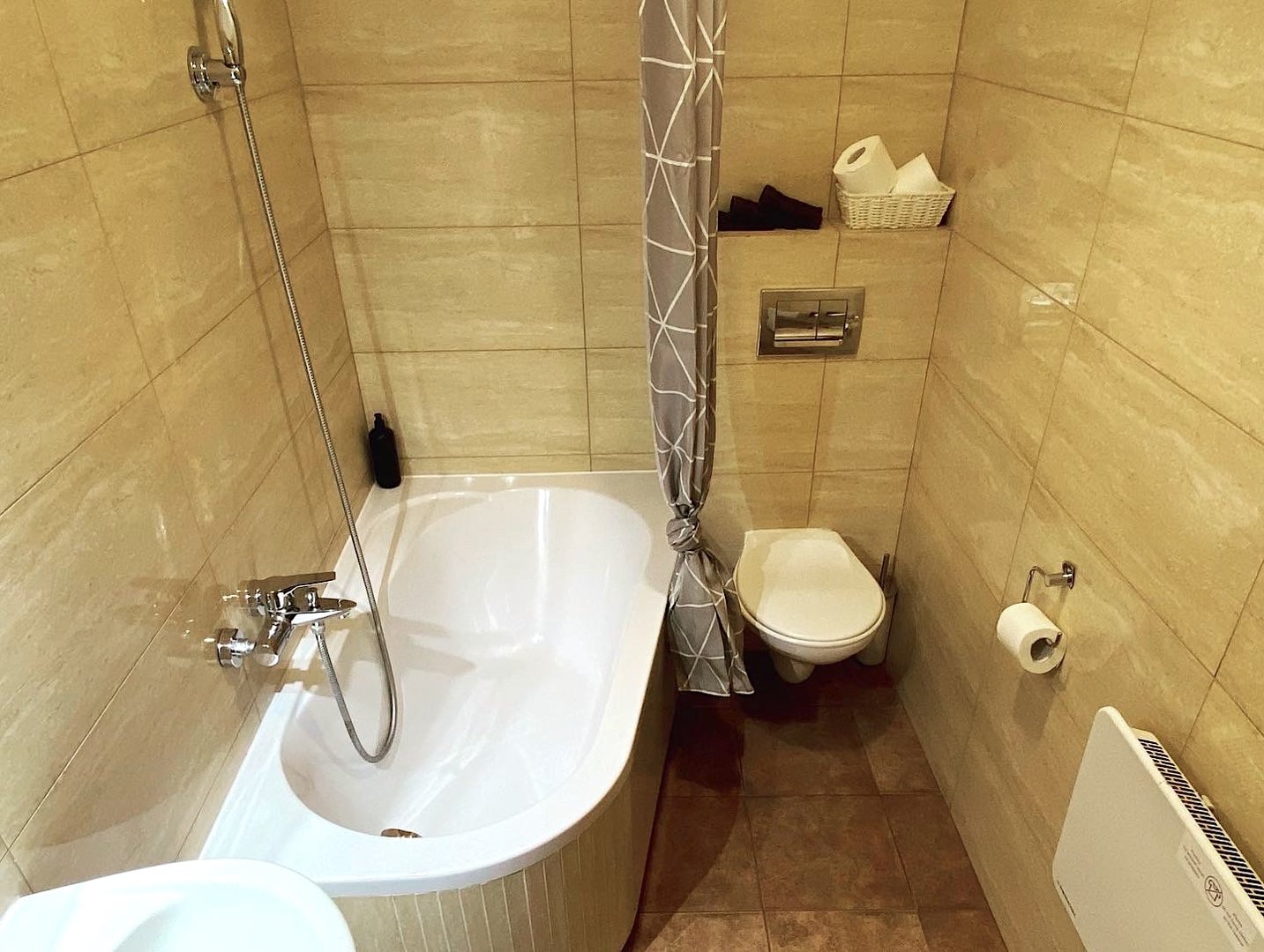 Do Państwa dyspozycji będzie jeden z dwóch przytulnie i stylowo urządzonych pokoi z balkonami o powierzchni około 20 metrów kwadratowych. Dostępna będzie również część wspólna z aneksem kuchennym, łazienka z toaletą oraz osobna toaleta. Pokoje wyposażone są w komfortowe, wygodne łózka, garderoby oraz telewizory. Dostępna jest również bezprzewodowa sieć wifi.