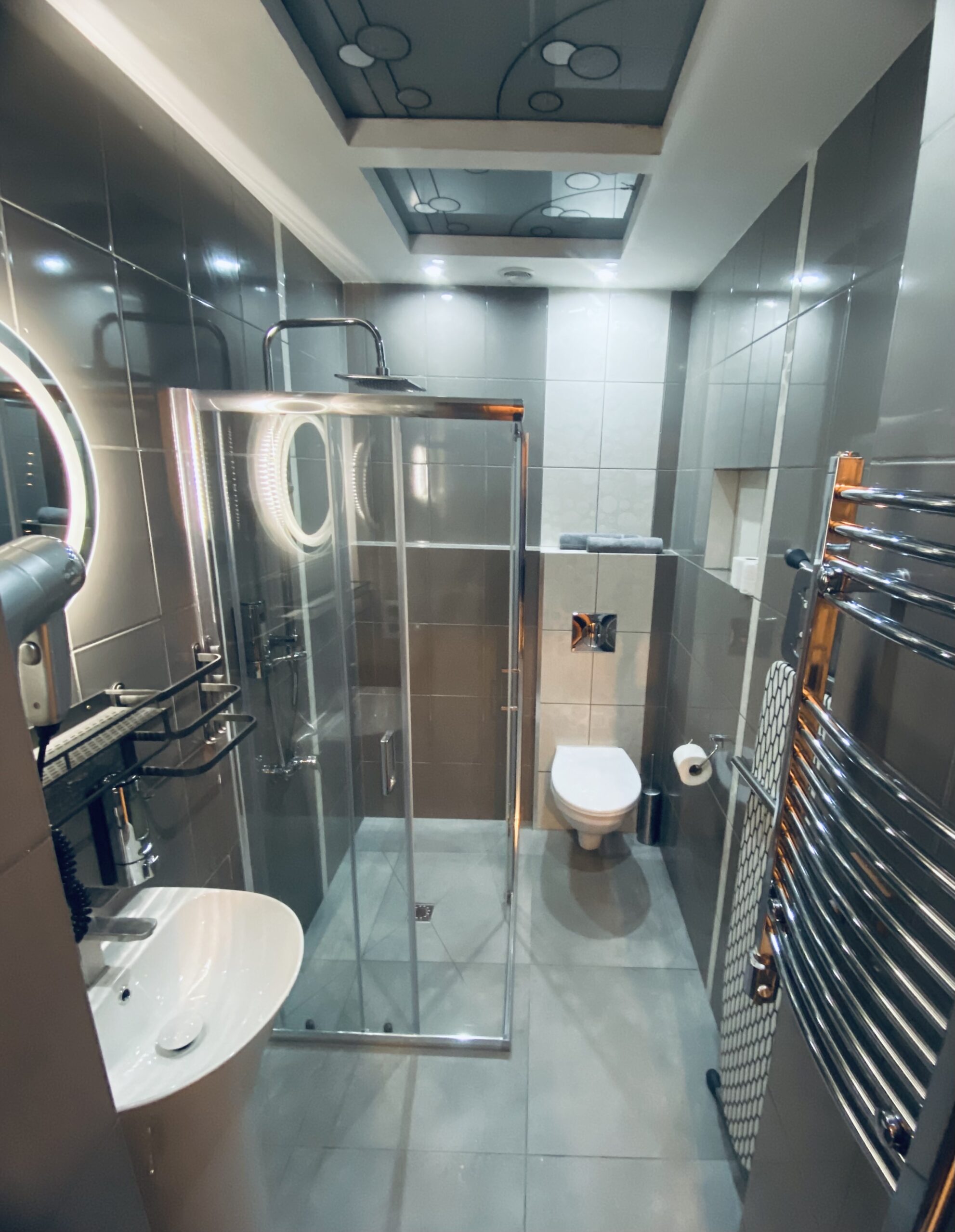 Do Państwa dyspozycji przeznaczamy cały apartament, na który składają się trzy niezależne, dwuosobowe pokoje z telewizorami (w tym jeden z prywatną łazienką), wspólna cześć wypoczynkowa połączona z w pełni wyposażonym aneksem kuchennym, osobna łazienka z toaletą oraz dodatkowa, osobna toaleta. W całym apartamencie dostępna jest siec wifi.