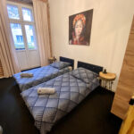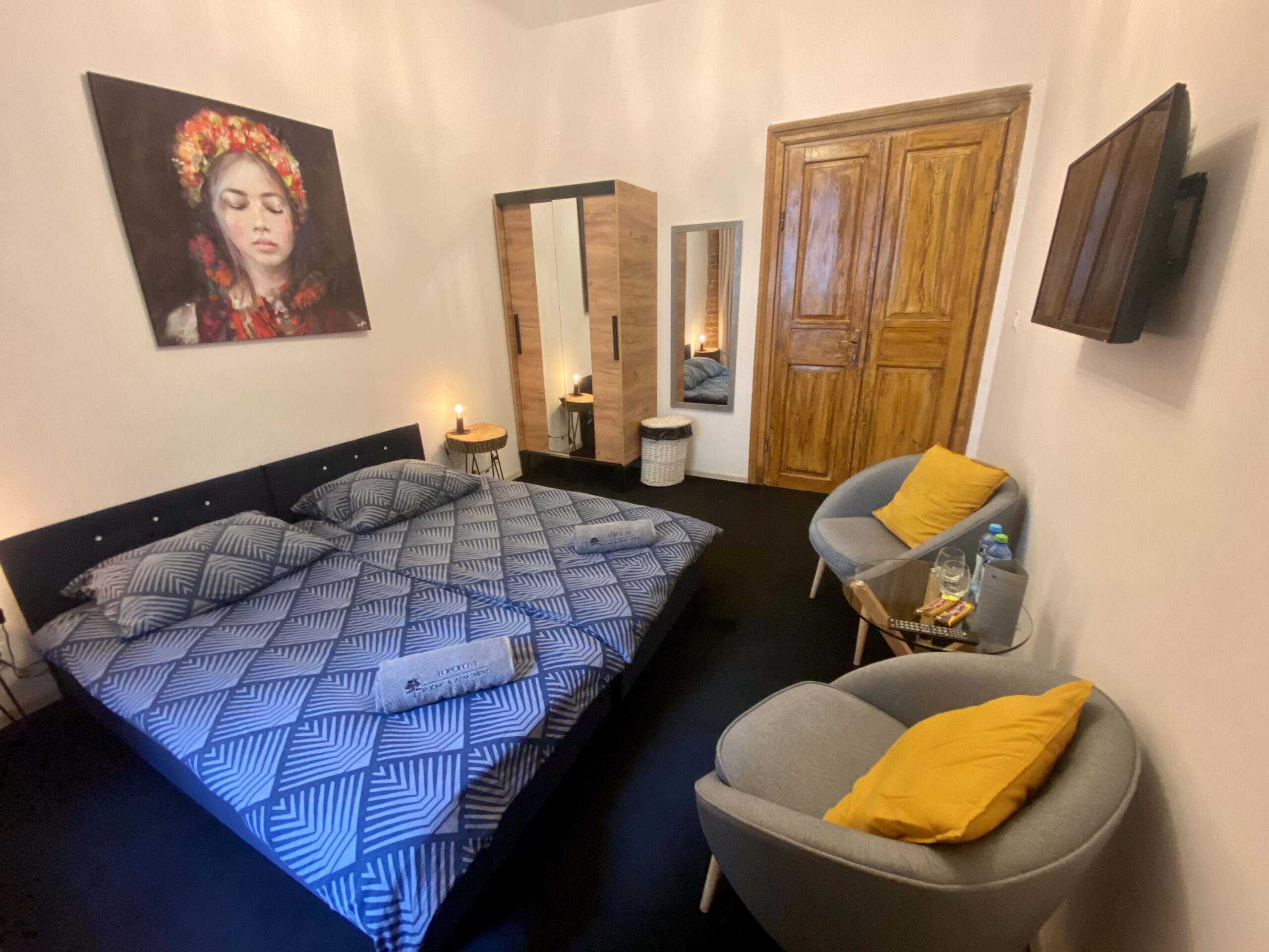 Do Państwa dyspozycji przeznaczamy cały apartament typu studio urządzony w wysokim standardzie. Składa się on z części sypialnej z podwójnym łóżkiem lub dwoma pojedynczymi oraz rozkładaną sofą w części wypoczynkowej z TV. W apartamencie znajduje się również w pełni wyposażony aneks kuchenny, łazienka z prysznicem oraz toaletą. W całym apartamencie dostępna jest sieć wifi.